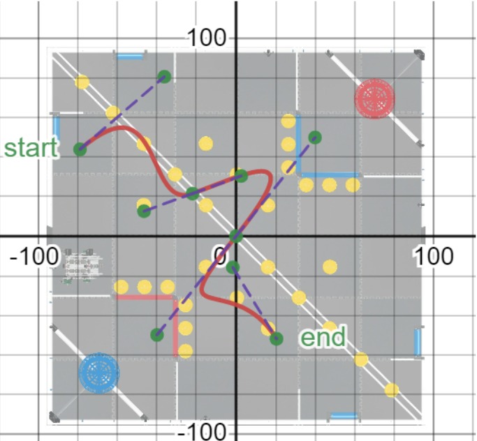 We developed new code, using Bezier Curves to develop a pure pursuit algorithm that followed custom odometry to move our robot in smooth accurate curves. The iterations of this code led us to developing efficient autonomous routes.